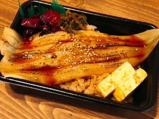 【メニュー:あなごめし(小盛/並盛/大盛】 広島宮島で有名なあなごめしです。だしと醤油で炊いたご飯に、遠⾚外線バーナーで炙った煮⽳⼦をのせました。