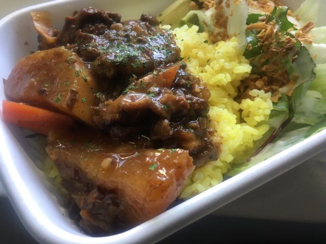 【メニュー:牛すじカレー/レモンチキンペッパー/ミックスグリル】 旨味と深いコクの甘口牛すじカレーにボリュームたっぷりのハーブソーセージとレモンチキンをご堪能ください。