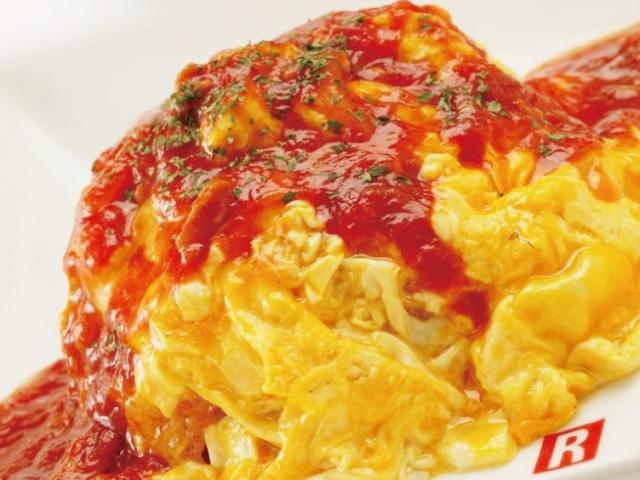 【メニュー:オムライス】 ふわふわ卵のオムライス。 チキントマトソース、ビーフデミグラスソース、マーブルソースなど 6種のお味からお好きなソースをどうぞ。