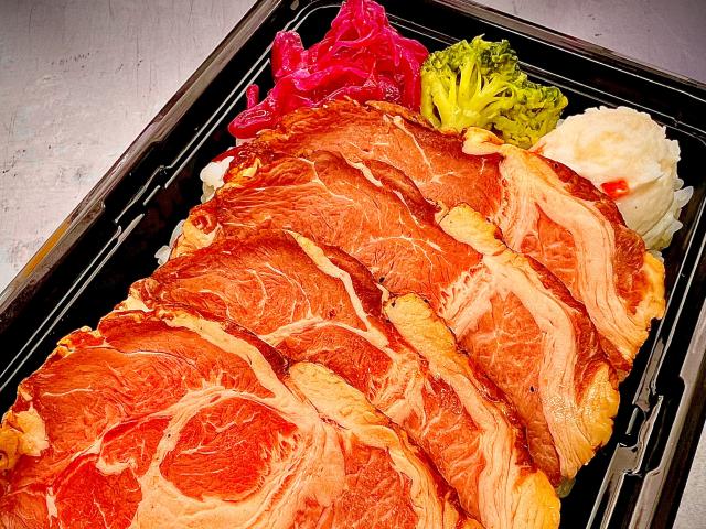 【メニュー:牛ハラミ¥900/ローストポーク¥800/お肉全部のせセット¥3000/カラフルドリンク¥300〜 】