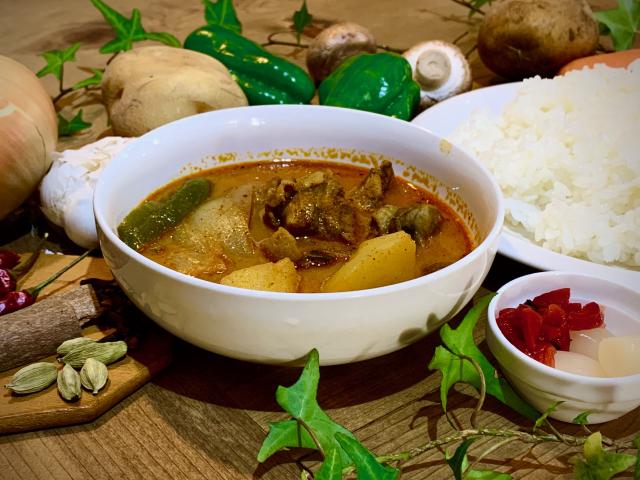【メニュー:チキンカレー】⾚いザウルスマークのカレー屋のキッチンカー。 サラサラなのに旨味とコクと、あとを引くスパイス 感︕