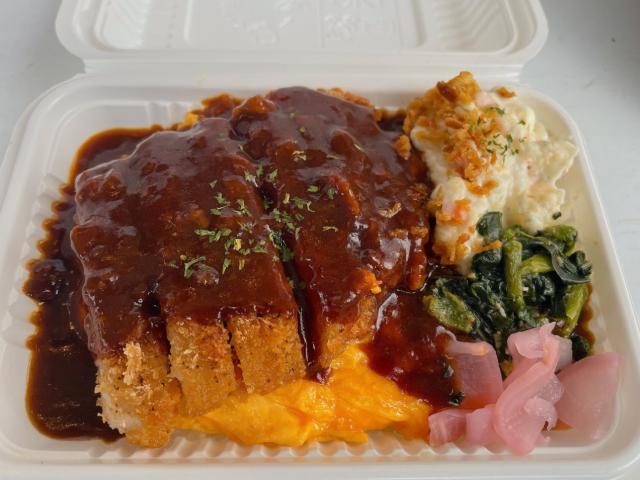 【メニュー:牛肉のオニオンソースライス/カツレツトマトチーズライス/ミートサルサライス/チキンのサラダライス】