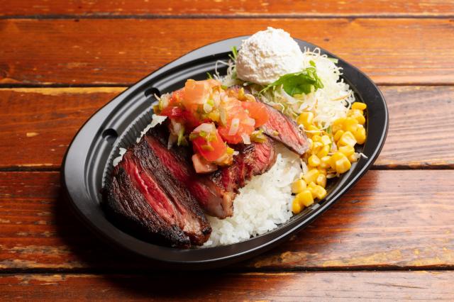 ブラックアンガス牛を使用したステーキライスに 自家製サワークリームとトマトたっぷりサルサメヒカーナが決め手です!