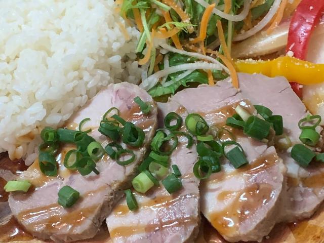【メニュー:低温調理のローストポークと旬の前菜】低温調理のローストポークに旬のお野菜を使った前菜を添えて。