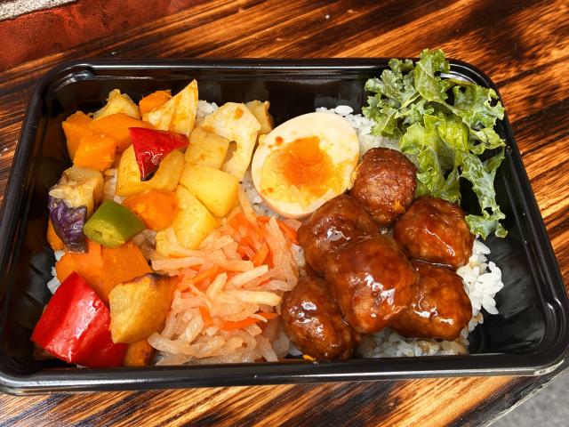 【メニュー:有機野菜とサーロインステーキ丼/有機野菜とハラミステーキ丼/有機野菜とネギタン塩丼】表参道の老舗オーガニックレストランで修業した店主が運営しているキッチンカーです。有機野菜や無農薬野菜など、自然の恵みを活かした健康的な料理を提供しています。