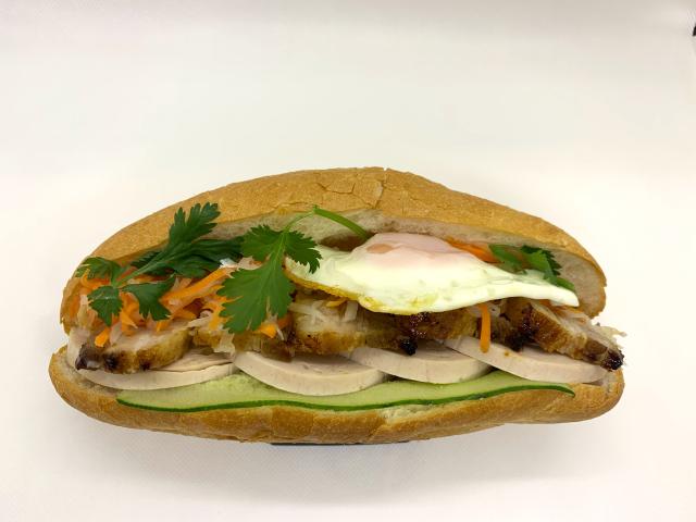 【メニュー:バインミー/ガパオライス/ネギチャーシュー弁当/味玉チャーシュー弁当】焼豚+ベトナムハムが挟まった「スタンダードバインミー」や、卵焼きを追加して美味しさUPした「スペシャルバインミー」など、バインミーの種類が豊富です。