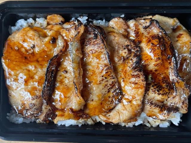 【メニュー:豚めし/各種トッピング】照り焼きタレにくぐらせた豚肉を、一枚一枚丹念に香ばしく焼き上げました。