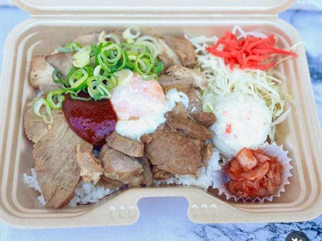 【メニュー:チャーシュー温玉丼/チャーシュー赤から丼/チャーシューチーズ丼】ジューシーなチャーシューとトロ~リ温玉が乗った絶品丼!柔らかい肉としっかり したタレで、満腹感満点のランチに最適!