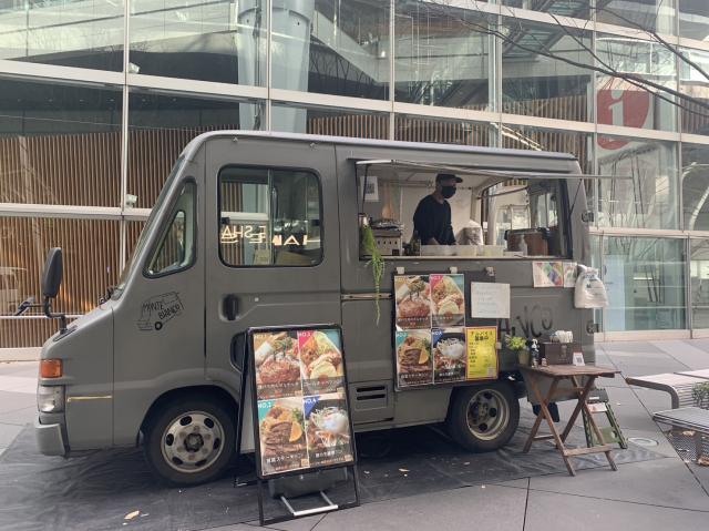 【メニュー:焼肉キャンプ飯 ¥1200/焼肉タコライス ¥1000/牛カルビ焼肉飯 ¥950/ネギ塩カルビ焼肉 ¥1000/コチュマヨ焼肉 ¥1000/タコライス ¥850/エッグタコライス ¥950/インディアンライス ¥850/チキンタコライス ¥1000】キャンプをイメージした移動カフェ。こだわりのキャンプランチを提供します。オススメは焼肉キャンプ飯!牛肉を特製ダレにつけたスタミナ丼です。
