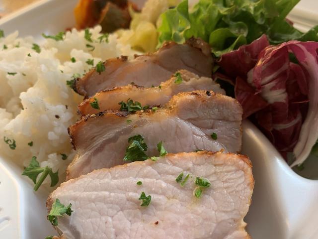 【メニュー:ロールキャベツ¥900/豚バラのポルケッタ(イタリア風チャーシュー)¥900/ポークジンジャー ¥850】 イタリア仕込みのローストポーク〝ポルケッタ”、慣れ親しんだ洋食の味〝ロールキャベツ”など先代から引き継いだ味をお届けします。週替わりで4種ご用意する副菜メニューの中からお好きな2種を選んで、炊き立てのご飯と一緒にお召し上がりください!