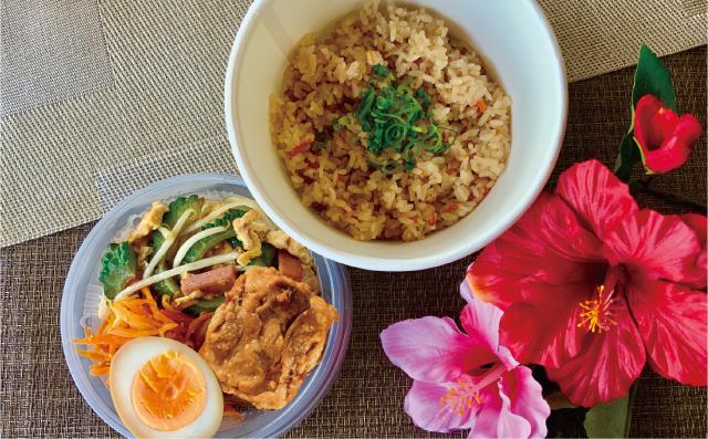 【メニュー:琉球ランチBOX¥950/鶏のマース煮弁当¥950/鶏とソーキの合盛弁当¥1000/ポークたまご弁当¥900/ソーキ丼¥1000/八重山そば¥900(ハーフ¥550)/ソーキそば¥1000(ハーフ¥650)/鶏そば¥950(ハーフ¥600)/ ミニ八重山そばとミニソーキ丼のセット¥1100/各種トッピング有】じゅーしー、ゴーヤチャンプルー、ソーキ、にんじんしりしり、煮卵の入った沖縄満載のお弁当です!石垣島のそば、八重山そばも提供致します。
