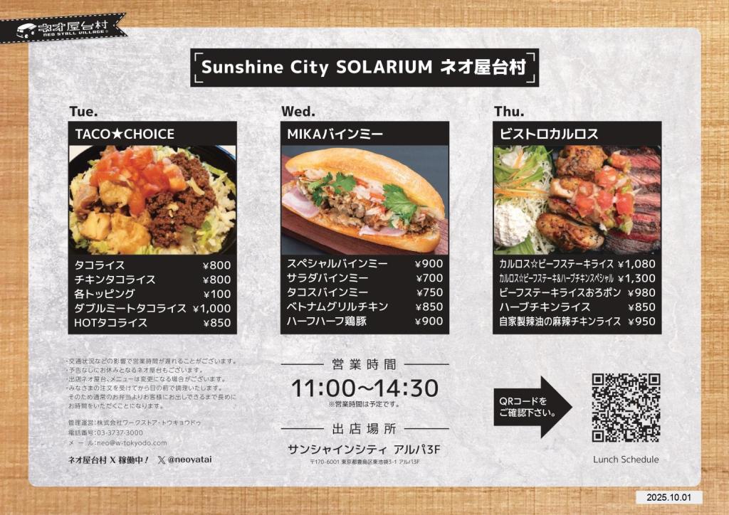 サンシャインシティアルパ3階 Sunshine City SOLARIUM にてサンシャインシティ ソラリウム ネオ屋台村 展開中!(火曜日から木曜日のみの営業となります。)